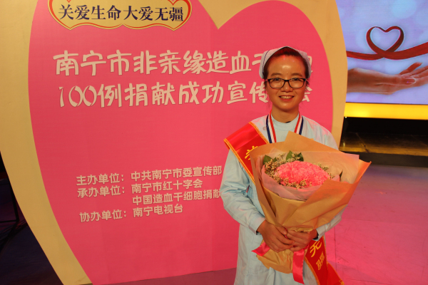 2016年11月7日,南宁市人大常委会副主任黎琳代表南宁市委书记、市长慰问正在进行造血干细胞捐献的蓝芸,并献上了鲜花与“捐献造血干细胞荣誉证书”。12月28日,她还作为南宁市第100例造血干细胞捐献成功志愿者在南宁电视台参加由中共南宁市委宣传部主办,南宁市红十字会和中国造血干细胞捐献者资料库广西管理中心承办的南宁市造血干细胞100例捐献成功宣传晚会的录制。
