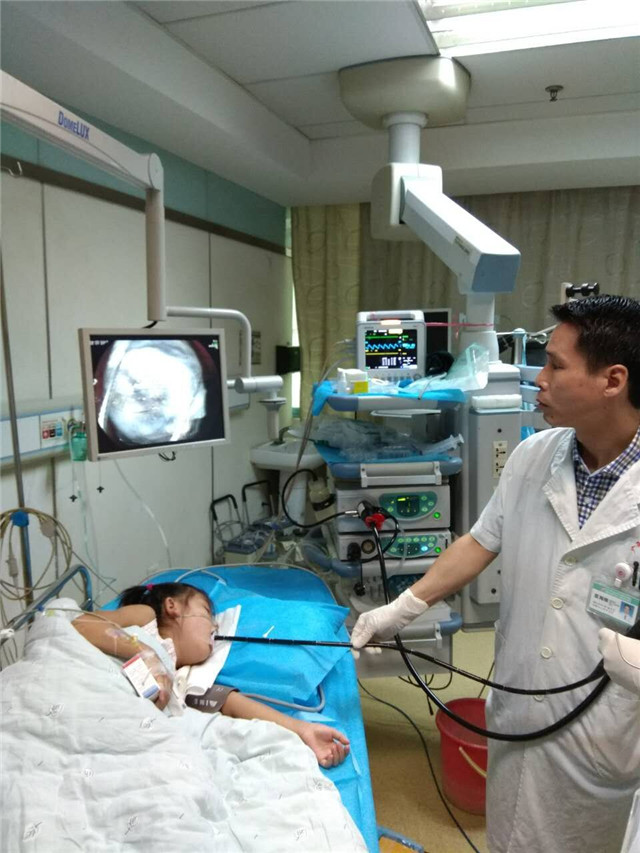 医生在为小婷婷做胃镜检查