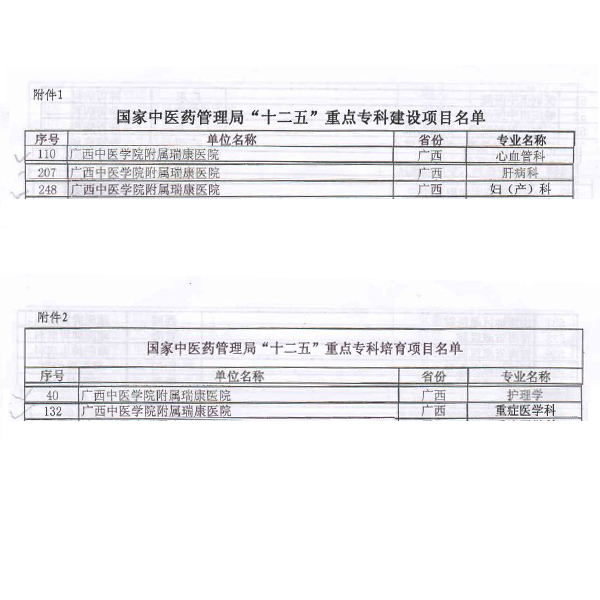 国家中医药管理局“十二五”重点专科培育项目