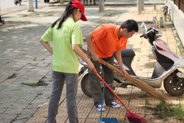 为积极响应“美丽广西,清洁乡村”的号召,帮助当地居民营造美好的生活环境,大学生志愿者们主动提出清扫县城主要街道的垃圾。活动中,志愿者们认真的清扫每个垃圾死角。活动结束时,大学生志愿者们纷纷表示,汗流浃背换来的是街道的整洁干净,这让生活在城市的同学们体验到了最朴实的生活方式,也增强了他们的社会责任感。