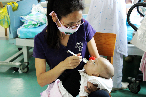 三例重症心胸外小患者其中之一,妈妈在给他喂辅食