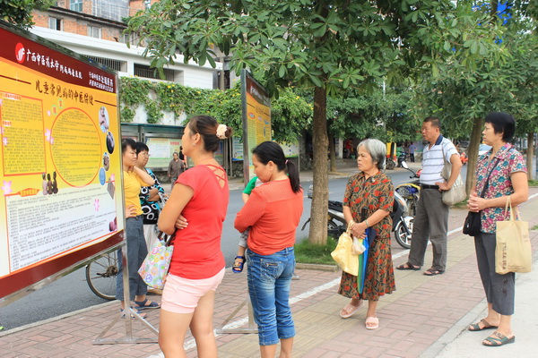 群众认真阅读展板