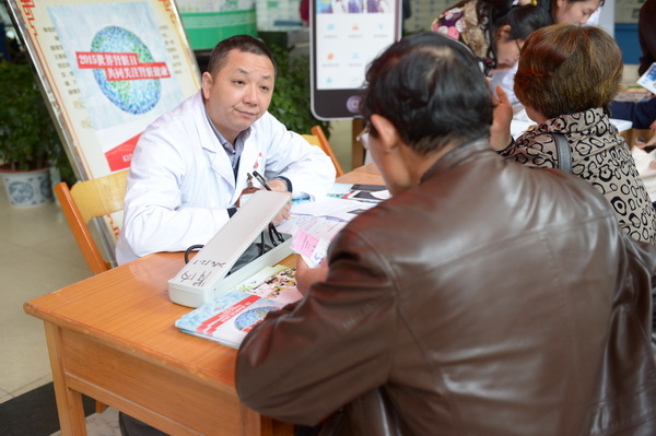 肾内科的专家们为前来咨询的患者答疑解惑,护士现场测量血压,并发放健康宣传资料,宣传早期肾脏病的筛查和诊断,增强广大民众了解肾脏、呵护肾脏的意识。