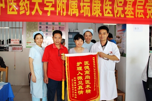 当天上午,我院肿瘤科、消化内科、肝病内科、呼吸内科、神经内科、内分泌科、老年病科、心血管内科、妇科、外科、中医科、皮肤科、针灸理疗科、检验科等科室的近二十多位专家亲临现场,免费为前来就诊的患者进行疾病诊疗、健康咨询、健康体检、健康指导等。尽管是周末,很多患者特别是老年患者还是早早来到义诊现场,等候专家,不一会儿就把共和路门诊部挤得水泄不通。专家们认真的服务态度和专业的技术得到了群众的称赞。当天还有位曾在共和门诊治愈疾病的江西镇患者给叶利斌主任及其团队送来锦旗,感谢他们精湛的医术、高尚的医德以及优质的服务。