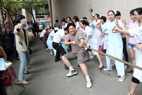 在“五一”国际劳动节即将到来之际,为了丰富医院职工的业余文体生活,增进友谊,增强职工的集体荣誉感,增强瑞康人的凝聚力,塑造职工顽强拼搏之精神,我院于2012年4月20日在急诊同道举办职工拔河比赛。