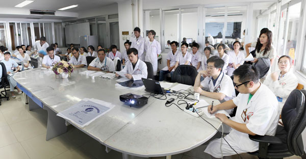 为进一步提高我院肾内科医务人员诊疗水平,应我院肾病风湿科邀请,2012年10月28日上午,国内著名中青年肾脏病专家、四川大学华西医院肾内科苏白海教授莅临我院肾内科进行业务查房指导。
