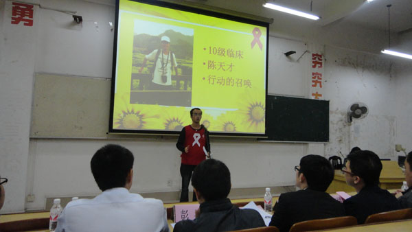 为纪念第25个“世界艾滋病日”,贯彻落实国家防治艾滋病的相关政策,响应广西高校大学生防治艾滋演讲比赛活动的号召,加强宣传艾滋病防治知识,普遍提高大学生对艾滋病的认识。瑞康临床医学院于2012年11月18日晚上在广西中医药大学明秀校区东梯二教室举办了“防治艾滋--你讲我学”主题团日活动。