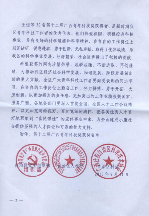 近日,自治区党委组织部、自治区人社厅和自治区科协联合公布第十二届广西青年科技奖获奖名单。经过专家评委认真评审和第十二届广西青年科技奖评审领导小组审核,授予30名青年科技工作者第十二届广西青年科技奖。我院邓鑫博士获此殊荣。