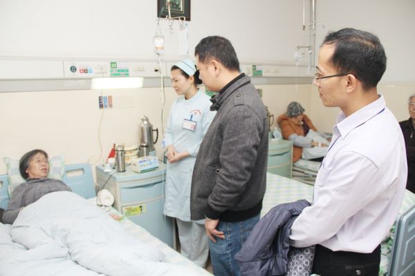 1月11日上午,在自治区社会保险事业局吴华章副处长的率领下,“基本医疗保险驻邕定点医疗机构分级管理”考核工作小组一行8人莅临我院,开展2013年度基本医疗保险驻邕定点医疗机构分级管理考核评审。我院党委书记唐友明,党委副书记、纪委书记陈日兰,副院长黄国东、韦思尊、高宏君及党政办公室、医务部、医疗保险办公室等相关科室负责人陪同检查。