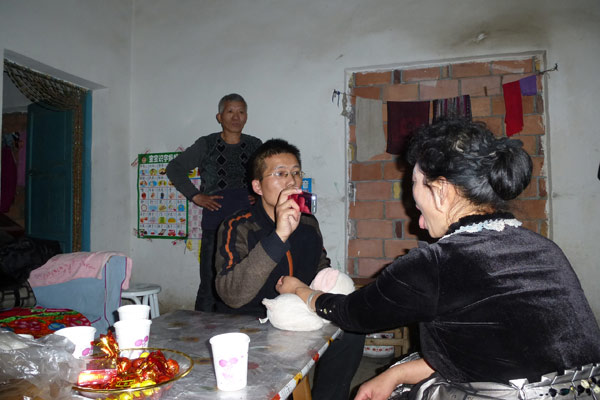 2014年2月1日(大年初二),蒋大夫在给患者建立电子病历,白发苍苍的老父亲和母亲在后面等候(右边第一位蒋大夫的老父亲、第二位母亲)