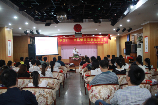 6月19日下午,我院医疗服务部和急诊科欧阳国林副主任应邀到苏州路2号开展健康中国行——全民健康素养促进活动,为广西壮族自治区通信产业服务有限公司物流分公司、广西壮族自治区邮电器材公司等4家公司开展《创伤急救的基本生命支持》讲座,为大众传播日常急救护理知识,提高全民健康素养。