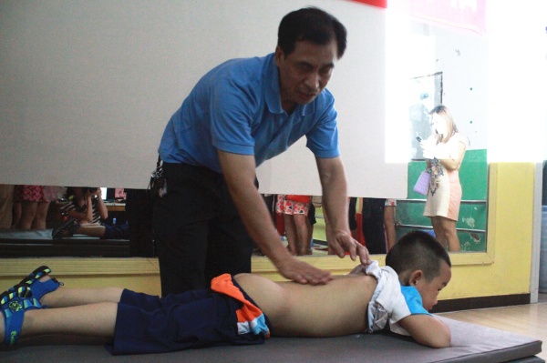 讲座结束后,李日东副主任医师还亲自为大家示范了“捏脊疗法”,手把手教大家为孩子捏脊,改善小孩的健康状况,提高健康水平。