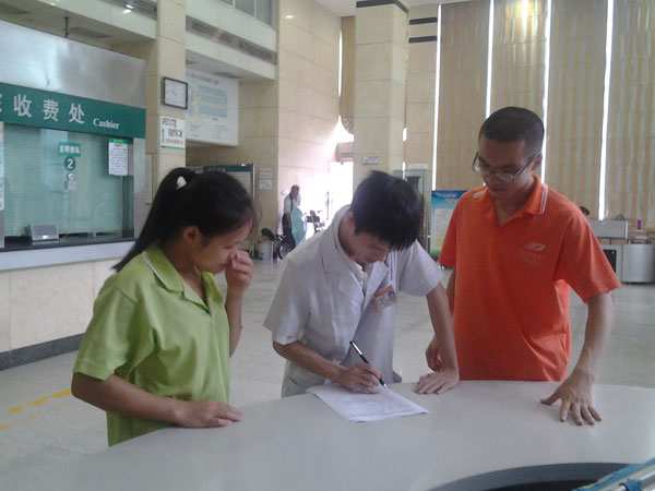 大学生实践队员在贵港市第二人民医院发放调查问卷