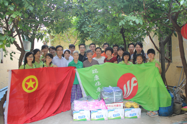 我院志愿者队伍与福康护老院院长及部分老人合影留念