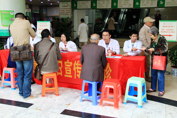 2014年11月19日是第十三个“世界慢阻肺日”,我院呼吸内科在医院门诊住院大楼一楼进行义诊及慢阻肺知识宣传,共有100多名患者到现场咨询及就诊,进一步普及慢阻肺防治知识。此次义诊,旨在向广大患者普及慢阻肺疾病的相关知识,告诉大家气短呼吸困难并不是伴随衰老而来的不可避免的疾病。