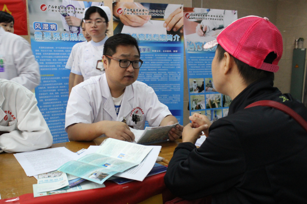 为期三天的义诊活动,我院风湿免疫科医生全员出动,为前来参加义诊的市民进行全方位服务。活动现场人头攒动,每位医生的义诊台前都排起了长队,有风湿免疫科的病友,也有探病经过顺便参加义诊的,更多的是看到了义诊信息的瑞康医院官方微信的粉丝们。带着浓重南普口音的李大叔介绍,“今年48岁,几个月前才开始发现的,天气变化关节就痛,一般几天就不痛咯,前几天儿子告诉我这里有义诊,今天赶早来看一看”。风湿免疫科主任庞学丰主任医师也在现场提醒,“风湿病年龄跨度大,每个人都应做到早预防、早诊断、早治疗,日常注意防寒保暖。”