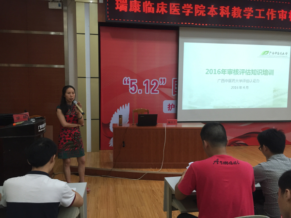 本次培训主讲人是医院党委副书记、纪委书记陈日兰教授,她在培训中强调全院师生应正确认识本科教学工作审核评估,并对审核评估知识文件的相关概念进行了全面的讲解。