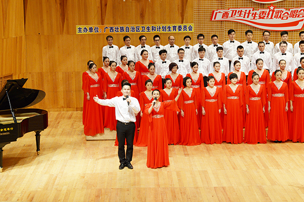 比赛现场,伴随着雄壮动人的乐曲,由广西卫生计生委带来的《光荣的白衣天使》和《团结就是力量》大合唱正式拉开了比赛大幕。随后,《旗帜颂》、《没有共产党就没有新中国》、《东方红》、《在希望的田野上》等歌曲陆续登台,一曲曲激奋人心的红歌,一个个全副武装的方队,在音乐厅掀起了一个又一个高潮。他们用真挚的情感、深情的演唱唱出了对党、对祖国、对人民最美好的祝愿和无限忠诚,也把现场观众带回了那个烽火岁月的年代,重温抗日战争的血与火。
