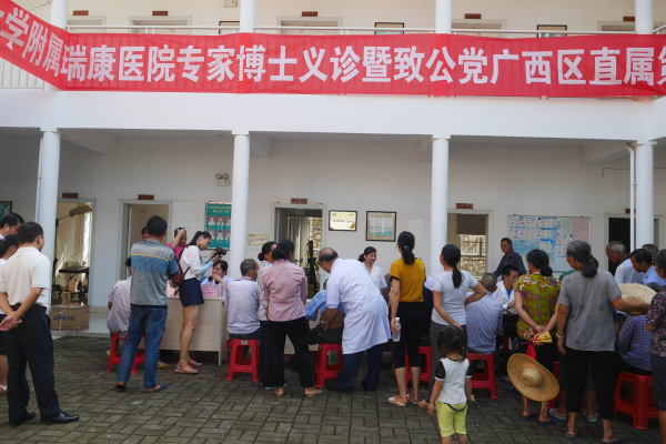 大家参观红七军起义纪念馆,重温中国共产党的发展历程后,联合致公党区直第二基层委员会党员同志一起来到百色市华润希望小镇开展送医送药下乡义诊活动。当地近百名村民前来接受中医正骨按摩、针灸、测量血压等检查治疗,并咨询骨伤、心血管、内分泌系统等疾病。义诊活动得到当地群众的一致好评。