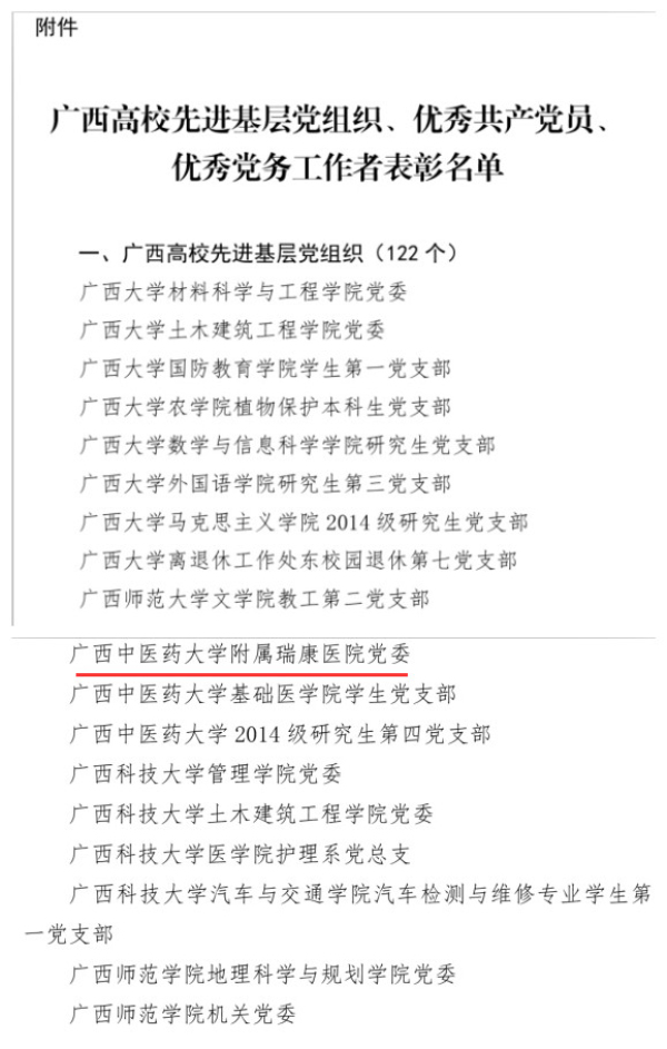 此次共评选表彰了122名“广西高校先进基层党组织”、198名“广西高校优秀共产党员”和126名“广西高校优秀党务工作者”。
