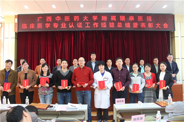 会议期间,陈日兰副书记宣读了《广西中医药大学附属瑞康医院关于表彰临床医学专业认证工作先进集体和个人的决定》文件,对我院在临床医学专业认证工作突出贡献团队(10个)、临床医学专业认证先进集体(10个)、临床医学专业认证学生先进集体(6个)及临床医学专业认证学生先进个人(103人)进行了表彰,会议还进行了临床医学专业认证工作经验交流。