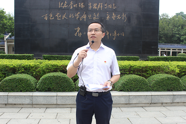 活动中,陈日兰副书记指出,我院教务学生党总支多年来重视和不断加强学生党员思想教育,努力创建学习型党支部,坚持定期组织开展学习、讨论和交流活动,提升每位学生党员的思想素质、感恩意识、传承创新精神和社会责任感。本次主题党日活动,是大家毕业前最后一次党性教育,希望大家充分感受中华民族的历史文化和烈士们艰苦奋斗、不屈不挠的革命精神,不忘初心,在今后的学习工作中怀感恩、勤奉献、善学习、敢担当,以党员的精神在人生道路上砥砺前进,而母校将是大家在前进道路上的坚强后盾。