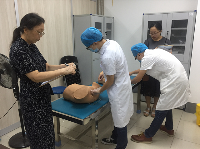 为贯彻落实国务院7部门《关于建立住院医师规范化培训制度的指导意见》(国卫科教发[2013]56号)精神,进一步提高我院住培医师的临床能力,健全我院住院医师规范化培训基地的管理,2017年9月20日全天,我院2017年中医\全科住院医师规范化培训2015级转段技能考核在明秀校区实训中心举行,本次考核得到了院领导的高度重视,由杨靖教授、黄绍湘教授、邓柏杨教授、欧阳国林教授等我院37位专家组成的考官团,在规定的时间内顺利完成对2015级规培生、研究生共172人次的技能考核。