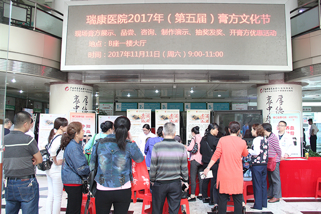 2017年11月11日上午,我院第五届膏方文化节现场体验活动在医院B座1楼大厅开展,活动现场有膏方展示、品尝、咨询、制作演示、抽奖发奖等丰富多彩的活动,旨在向邕城市民推广膏方养生治疗理念,普及膏方文化知识。