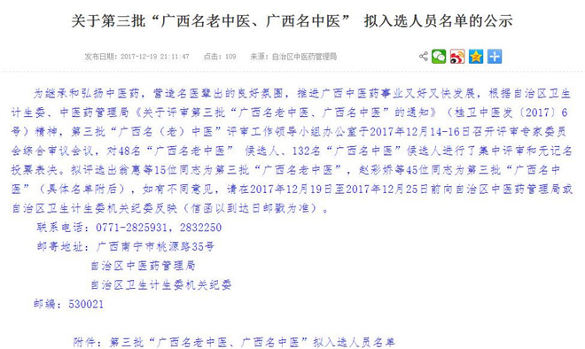 近日,第三批“广西名老中医、广西名中医”拟入选人员名单公示,广西最终拟评选出15位教授为第三批“广西名老中医”,45位教授为第三批“广西名中医”。其中我院有3名教授通过广西名老中医、9名教授通过广西名中医的评审。