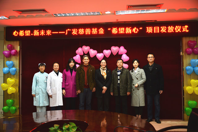 2月6日下午,心希望,新未来——广发慈善基金“希望新心”项目发放仪式在我院23楼学术报告厅举行,医院副院长韦思尊,广发银行南宁分行副行长黄碧琴,广西青少年发展基金会副秘书长苏瑜,医院胸心外科主任杨柳山,副主任范悦等到场参加仪式。