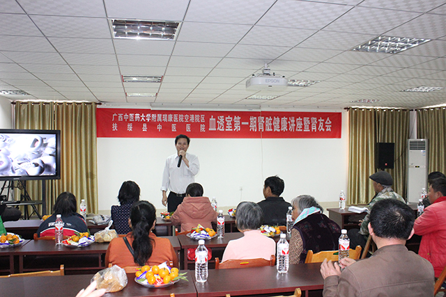 活动中,院区副院长朱志华作了题为《中医对肾脏的认识》的精彩讲座,从中医的角度对肾病的发病原因、发病机理进行了详细地讲解,提出了肾病治疗越来越趋向于中西医结合治疗,西医消除各种临床症状的同时,配合中医恢复人体机能,即使进入尿毒症透析阶段,在利用透析机清理血液毒素的同时,也能用中医补气血的治疗理念增强体质,使患者获得更好的治疗体验。