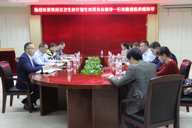 3月16日下午,贺州市卫计委翟献全副主任一行7人到我院参观交流,医院院长唐友明,副院长韦思尊,党委副书记、纪委书记黄建民,副院长陈锋及相关科室负责人、贺州家医技术指导团队成员代表等热情接待并陪同参观。党委副书记、纪委书记黄建民主持座谈会。