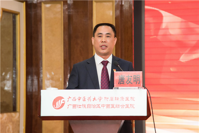 唐友明院长在会上围绕“重质量 强特色 树品牌奋力谱写瑞康医院发展新篇章”作报告,唐院长在报告中用凝练的语言,高度概括了2017年医院的成绩:新增国医大师1人,新增第六批名老中医经验传承指导老师3名,第四批全国优才1名,广西名老中医3名、广西名中医9名;新增李桂文全国名老中医工作室;组建医院“重大项目办公室”;成立中西医结合医学转化中心;成功引进上海交大李荣秀教授高层次科研团队;荣获广西医疗服务百姓口碑榜的“综合实力奖”“医德医风奖”“公益先锋奖”三大奖项;荣获“中国红十字基金会2017年度彩票公益金项目儿童大病救助工作优秀单位”称号;荣获国家“2017年优质服务示范社区卫生服务中心”称号;荣获“广西卫生应急技能竞赛”区直单位比赛团体及个人第一名;创新医联体建设,帮扶基层学科人才建设,医共体建设初具规模;国医大师韦贵康教授、全国名老中医林寿宁教授荣获“中国好医生”月度人物称号等等。他从14个方面翔实地介绍医院上一年度的工作成效:一是业务实现新增长;二是医疗质量明显提高;三是护理工作取得新成效;四是学科设置进一步优化;五是中医特色建设取得新进步;六是多措并举适应医改新形势;七是实施改善医疗服务行动计划初显成效;八是教学工作迈上新台阶;九是科研工作呈现新气象;十是艾滋病防治研究工作取得新进展;十一是人才及干部队伍建设不断加强;十二是全心全意为职工谋福祉,职工收入明显增长;十三是宣传工作和文化建设成绩突出;十四是党的建设进一步加强。