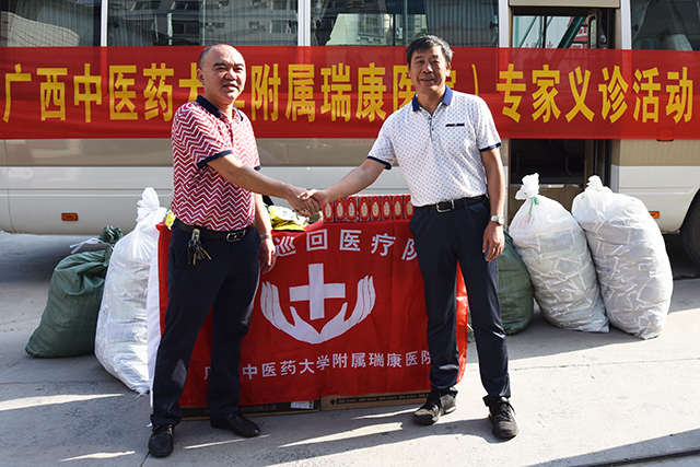 我院在仪式上向环江县各级医疗机构赠送了一批药品。
