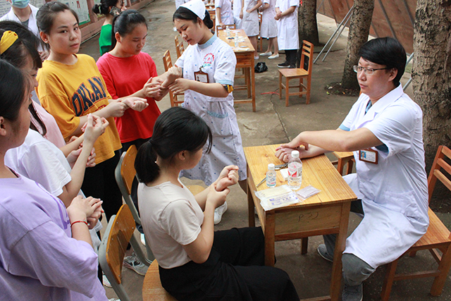 为缓解高三考生考前压力,以健康、饱满的精神状态迎接高考,空港院区于6月1日到扶绥二中开展“助力高考,成就梦想”健康巡诊活动。
