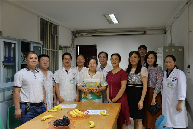 最后,人力资源部职改办主任彭爱莲代表医院向姜振兰和滕南南赠送纪念品,并合影留念。