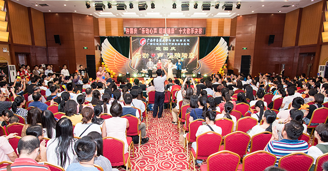 为庆祝中华人民共和国成立69周年,激励广大职工坚定理想,不忘初心、牢记使命,营造高雅活力的医院文化氛围,积极推动医院精神文明建设,9月29日晚上7点,由我院党委、工会、团委联合举办的迎国庆“乐动心声 唱响瑞康”十大歌手决赛晚会在天湖酒店隆重举行。才华横溢的瑞康人用极具魅力的歌声、清脆婉转的琵琶声、青春活力的鼓声以及婀娜曼妙的舞姿为现场400名观众和观看网络直播的近200名网友献上了一场视听盛宴。广西中医药大学公共卫生与管理学院党总支书记李怀泽受邀出席晚会并担任评委,医院全体院领导出席晚会。