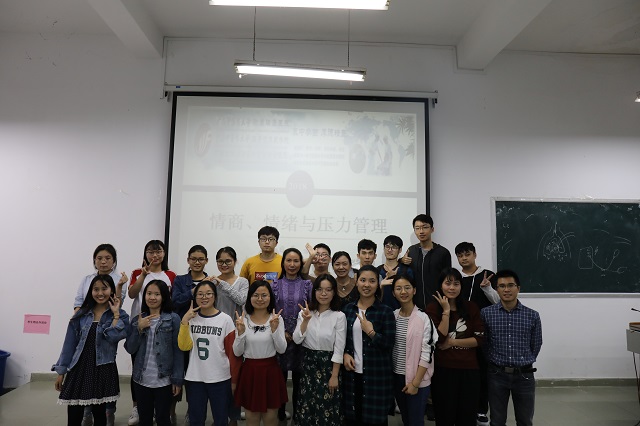 第二堂课由教务学生党总支书记何颖及其它辅导员组织开展,通过团体辅导分组比赛、勇敢向前行活动、给父母写信、拥抱和结束语等环节,让参加活动的学子释放心理压力。