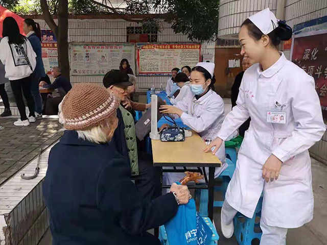 11月23日上午,我院医疗服务部组织内分泌科、眼科、肿瘤科专家与北湖南棉社区卫生服务中心一起走进衡秀里街道开展义诊活动。此次义诊以“政府关怀——满65岁老人免费体检”为主题,专家们为社区群众测量血压、检查眼底、宣传防癌和血压血糖日常控制的养生保健知识,受到了社区老年群众的欢迎。