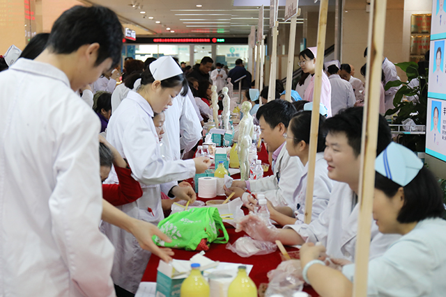 随着唐友明院长宣布活动开始,各科室医务人员或站着、或坐着、或蹲着,针对群众的需求对不同穴位进行贴敷,并耐心地解答他们的疑惑,对相关疾病提出了日常预防、保健及治疗建议。
