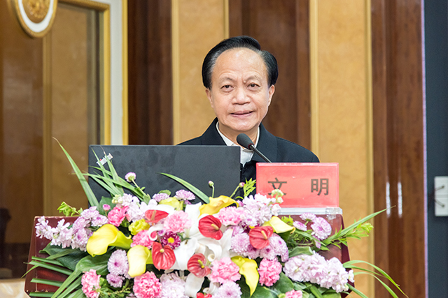 文明主席在致辞中首先对国医大师韦贵康教授为弘扬中华文化、传承发展中医药事业作出的卓越贡献表示崇高敬意和衷心感谢。他指出,中医药是中华民族传统文化的瑰宝,是中国走向世界,向世界人民展示中华文明的重要途径,据统计,中医药已经传播到了世界上183个国家和地区,各类中医药从业人员约有30万人,中医药医疗机构有8万多家,世界中医药服务市场估值约为每年500亿美元。中医药也先后在澳大利亚、加拿大、奥地利、新加坡、越南、泰国、阿联酋、南非等国家和地区以国家立法形式得到了认可。我们应当着力中医药的传承与发展,努力创新“一带一路”沿线国家中医药发展机制,加强与同行的交流与合作,促进分享和传承,进一步推动中医药走向世界。