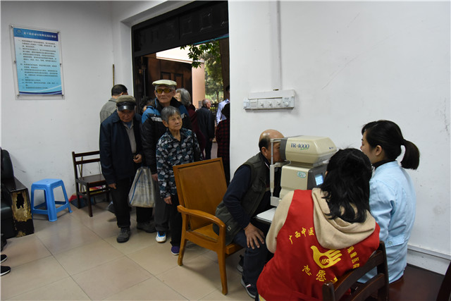 随后开展的义诊活动,专家们现场免费为老人检测眼部健康。眼科唐勇华主任,视光中心的谢祥勇主任、何碧华副主任为老人们免费看诊、讲解健康常识并提醒有需要的老人及时入院治疗。不少周边社区的老人纷纷闻讯而来,志愿者们也热情引导老人有序检查看诊,派发健康宣传资料。