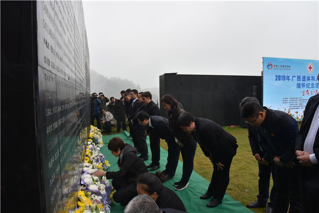 为缅怀纪念遗体和人体器官捐献者,树立良好的社会新风尚,进一步推动遗体和人体器官捐献事业发展,4月2日上午,我院由党委书记高宏君带领职工代表、学生代表以及志愿者代表参加自治区红十字会组织的“生命如花·2019广西遗体和人体器官捐献缅怀纪念活动”,并负责活动现场的医疗保障工作。自治区红十字会、自治区卫生健康委员会、自治区直属机关工委、公安厅、总工会、团区委、区妇联、财政厅,医疗机构代表,遗体器官捐献者家属代表,器官移植康复者代表以及社会各界爱心人士出席活动。