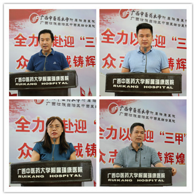 6月29日,我院召开“三甲”医院评审誓师动员大会,进一步统一全院思想,调动广大干部职工迎评热情,凝心聚力,吹响迎接三甲医院评审攻坚战的“冲锋号”,充分做好评审前的各项准备工作,确保高质量通过三甲评审的现场检查。医院院长唐友明、党委书记高宏君、副院庞刚、韦思尊、纪委书记黄建民、副院长陈锋、宋策及全体中层干部参加此次会议。