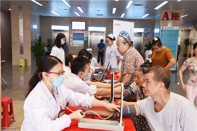 活动中,医务人员为群众测量血压、发放宣传资料、提供健康咨询,耐心地询问他们的身体状况,为他们提供专业的治疗意见,并告知他们癫痫的防治知识,以及日常的锻炼及饮食建议。