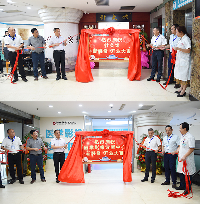 经过近半年的精心装修和升级改造,9月3日上午8点10分,我院在B座2楼举行医学影像诊断中心和针灸馆开业仪式。两个科室的重装开业,标志着我院在“西医做精做强、中医做特做优”的中西医结合事业上继续有所突破、收获成果,能够为全区乃至全国人民群众提供优质、便捷、安全、高效和透明的中西医结合特色医疗保健服务。