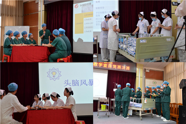 为加强我院护理临床实践教学水平,提高教学能力和护理人才培养质量,提高临床护理教学人员精诚协作的团队精神和教学查房工作中的组织、规划及设计能力,10月23日至24日,由我院护理部组织举办的第三届(2019年)临床护理教学查房竞赛在B座10楼教室举行,本次竞赛以“不忘初心、牢记使命,立足本职、追求卓越”为主题,共有37个临床科室积极参与。10月24日上午,临床护理教学查房决赛正式拉开帷幕,医院党委书记高宏君,党委副书记、副院长陈日兰,副院长陈锋前来观摩指导比赛。