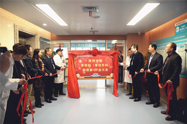 12月23日上午,我院在B座17楼举行脊柱外科重新装修后开业仪式,重新装修后的病区焕然一新,于当天上午开业仪式后正式投入使用。我院院长唐友明,党委书记高宏君,党委副书记、副院长陈日兰,副院长庞刚、韦思尊,纪委书记黄建民,副院长陈锋、宋策以及全国名老中医、著名骨科专家李桂文教授,医院各临床、医技、门诊、行政职能部门中层干部代表出席开业仪式。高宏君主持开业仪式。