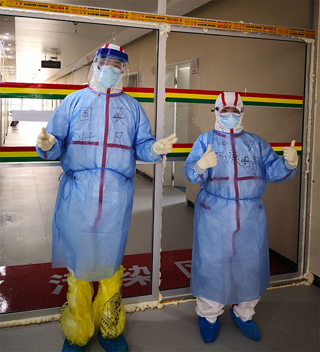 在这里很能体会到哥哥姐姐对我的关爱,还有来自后方大瑞康各位领导同事以及亲朋好友,你们的祝福我也收到了。我们一定履行医者职责,做好防护,不辱使命。