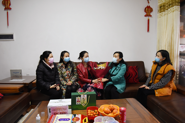 3月4日,自治区妇联副主席岑宛玙、发展部部长杨海林在我院党委副书记、副院长陈日兰及相关部门负责人的陪同下,对我院疫情防控一线医护人员及家属进行走访慰问,为“最美逆行者”及其家属送上真诚的问候。